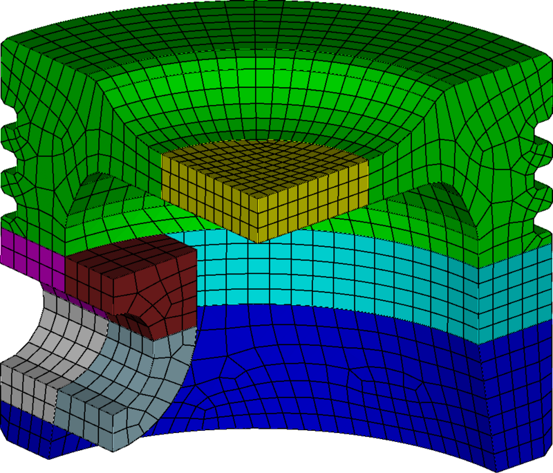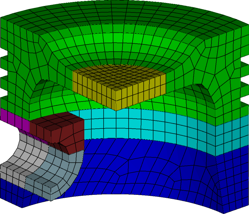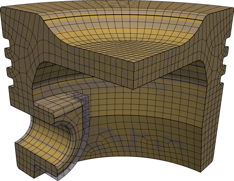 Figure 132: An example flex spectrum. The CAD surfaces that will be defeatured (light highlight), immersed (medium highlight), and body-fitted (dark highlight) are highlighted.
